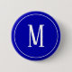 Un botón redondo con un monograma blanco en un fondo del azul real. Modifique el botón para requisitos particulares con su propia inicial o iniciales, colores, entre otras opciones.