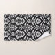 Damasco frondoso en un diseño del modelo de la superficie del estilo del vintage en el detalle blanco en un fondo negro.