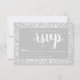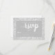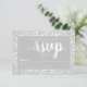 Tarjeta de respuesta de boda informal en blanco y gris con brillo de diamante y letra a mano alzada.