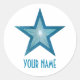 Diseño moderno con una estrella "brillante" azul y blanco sobre un fondo blanco. Pegatina con un diseño de personalizable para que usted pueda personalizar con su propio texto, imágenes e ideas. El texto puede cambiarse fácilmente utilizando la plantilla proporcionada o haciendo clic en el botón "Personalizar" para realizar más modificaciones. Tenga en cuenta que se trata de una imagen impresa creada con fotografías originales y técnicas digitales, que no brilla ni contiene chispas reales.