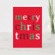 Esta tarjeta de Navidades incluye las palabras Feliz Navidad en el frente con colores clásicos de vacaciones rojas, blancas y verdes.