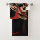 Añade un toque de drama a tu baño con esta magnífica toalla Kabuki. El conjunto incluye una toalla blanca, una toalla roja y una toalla negra completa. Pareja perfectamente con nuestra cortina de ducha Kabuki y nuestra alfombra de baño.