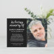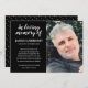 Que la familia y amigos sepan de un fallecimiento en la familia con este hermoso texto blanco en la invitación de fotos en negro.