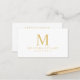 Un blanco y un diseño elegante elegante moderno del oro que ofrece el monograma y su información en estilo de fuente profesional del oro en el fondo blanco.
