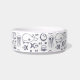 El blanco y la marina de guerra entintan el dibujo de la pluma de una variedad de criaturas del mar del océano (pescados incluyendo, ballena, las medusas, y los pescados del fumador), impreso en un pequeño cuenco del mascota.