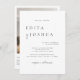 Invitaciones de boda en español. Una invitación elegante en blanco y negro. Al frente, un diseño limpio sobre fondo destaca el texto principal de la invitación, clásica una combinación de tipografía y caligrafía moderna. Al reverso, una foto de la pareja acompaña un código QR y un dedicado a los detalles del, para que sus æfácilmente a la web de la boda. Un diseño sencillo y moderno, perfecto para temporada o・de・. Versión en inglés también disponible.