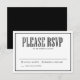 ¿Quién va a asistir? Deje que sus invitados RSVP con esta tarjeta de respuesta de personalizable. Presenta una tipografía vintage, perfecta para cualquier tema boda. Personalízalo añadiendo los detalles del evento. Esta tarjeta RSVP en blanco y negro también está disponible en otros colores y cartón.