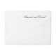 Blanco y negro. Negrita y sorprendente. Moderno y sofisticado. Crisp blanco limpio en sorprendente contraste con el audaz guión negro. El guión de caligrafía que aparece para los nombres de la pareja es un elaborado guión de mano dura con trazos en bucle y letras mayúsculas muy florecientes.