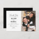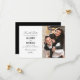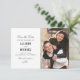 un simple texto en blanco y negro y una foto personalizada de la pareja. El color y los detalles del texto se pueden personalizar.