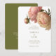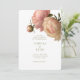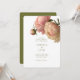 Moderno y de moda con un toque clásico. Esta encantadora invitación a la boda ofrece un ramo de voluptuosos acentos rosas contra los crudos orígenes blancos y verdes de oliva. El conjunto de fuentes contemporáneas en verde oliva exudan una elegante elegancia moderna. En la parte trasera se incluyen los detalles del sitio web de un par de bodas y se le solicita confirmación.