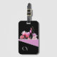Blk Classy Monogrammed Pinks Etiqueta Botánica De