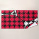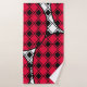 Este juego de toallas incluye un lavabo negro, una toalla de mano rosa y una toalla de baño con un diseño moderno de mediados de siglo de diamantes negros sólidos dentro de los contornos de diamante negro con manchas rosas debajo de ellas, todo sobre un campo de blanco.