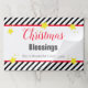 25 Navidades de rayas negras y blancas colocan esteras de papel con estrellas amarillas y acentuadas con rojo. El texto se puede personalizar a cualquier mensaje inspirador especial, o el texto se puede eliminar. Las franjas negras pueden cambiarse a cualquier color que prefieras, junto con el fondo blanco. La decoración de las mesas de personalizable.