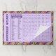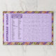 Personalice el texto de feliz cumpleaños con el nombre de los niños, para fiestas de cumpleaños o decoración de mesa de restaurante. Este divertido juego de palabras de búsqueda es tema de cumpleaños. El texto morado y negrita se puede cambiar a cualquier color, así como el fondo malva pastel claro. Personalice para adaptarse a los colores de los eventos. El gran rectángulo del centro de la muave, muy luminoso, también se puede cambiar a cualquier color pastel.