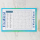 Personalice el texto para usted mismo para la cabaña, o remolque, ideal para la decoración de mesa de restaurante situada cerca de un puerto, o zona de playa turística. Este divertido juego de palabras es de temática náutica. Los marcos y el texto azul marino se pueden cambiar a cualquier color. La imagen de fondo se puede eliminar y cambiar a cualquier color que se adapte a su establecimiento.