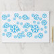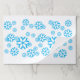 Los copos de nieve de múltiples tamaños se colocan en varias posiciones en la alfombra del lugar. Azul sobre fondo blanco.