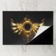 Areas mecánicas brillantes, con engranajes y banner redondo de latón. Steampunk