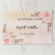 Una plaza de papel, carteles para un Boda y el marco de la mesa de la recepción. Fondo de degradado de color dorado y rosa pálido subió. Decorado con flores rosas y pampas. Personalice y agregue sus nombres y la fecha de boda.
