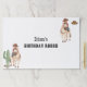 ¡Qué alegría para un divertido cumpleaños de rodeo de vaquero! Con gorras de vaquero, botas, caballos y encanto rústico occidental, perfecto para el gran día de tu vaquero. Ideal para los fiestas de granero, los primeros rodeos o las celebraciones del Lejano Oeste. ¡Personalice el nombre y la edad de su hijo!