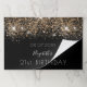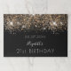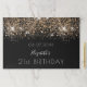 Un fondo negro con polvo falso purpurina de oro. Personaliza y agrega una fecha, nombre y edad 21. El nombre está escrito con un guión moderno estilo letras a mano.
