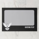 Paloma voladora con un icono de clave simple. Texto personalizado.