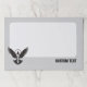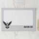 Paloma voladora con un icono de clave simple. Texto personalizado.