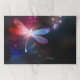Flor, vuelo, libélula roja, con alas transparentes y detalladas sobre fondo oscuro, nocturno y luminoso con plantas tropicales y luciérnagas. Lluvia roja.