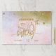Elegant and feminine personalized 50th birthday paper placemat featuring the number 50 made of faux gold rose foil balloons on an abstract pastel background with glitter elements. The text is fully customizable. To change it use the Personalize option. For more changes, such as changes to the font, font color or text layout, use the Edit design tool option.