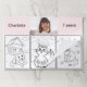 Una alfombra para una fiesta de cumpleaños de niñas. Personaliza y agrega un nombre, foto y edad. Con 3 imágenes de gatos para colorear.