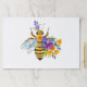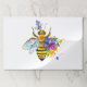 Artistically drawn, flower, honey bee with contrasting colors, yellow, bright, blooming california poppy and blue wild plants on white background.