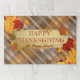 Adorna su mesa de Acción de Gracias con este único lugar en el periódico de Acción de Gracias. El diseño presenta un estilo clásico de enlucido en ricos tonos otoñales y sirve de base rústica. En el centro de la ciudad se encuentra una llamativa pincelada dorada, un lugar perfecto para personalizar tu nombre familiar. Todo el diseño está bellamente enmarcado por una dispersión de hojas de arce vibrantes en tonos de naranja quemado, rojo rico y oro, lo que aporta la calidez de otoño a la mesa.