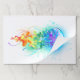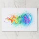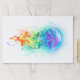 Grandes medusas de azulejo brillantes, de dibujos artísticos, con largos tentáculos en blanco, pintadas con fondo multicolor de acuarela. Mariscas arcoiris.
