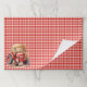 Emplazamientos de papel para una fiesta de cumpleaños con temática de granja infantil. Controles rojos / gingham con tractor rojo y diseño de heno. Separe cada hoja según sea necesario para decorar una mesa fiesta. Tira hacia fuera cuando esté hecho.