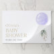Añada un toque personal a la celebración de la ducha de bebé con estos artículos fiestas de diseño e inolvidables. El diseño presenta globo violeta con hojas de eucalipto sobre fondo blanco.