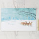 Un grupo de ciervos de huevo pisa la nieve recién caída bajo un viejo roble. Paisaje invernal pintado en colores que ilustran un frío día de invierno en la naturaleza. Ilustracion del libro de Julia Doria.