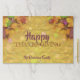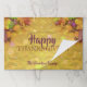 Personalized Thanksgiving paper placemat design featuring maple leaves, raindrops and lights on a paper background. The text is fully customizable. To change it use the Personalize option. For more changes, such as changes to the font, font color or text layout, use the Edit design tool option.