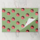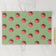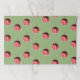 Helados rosas con chocolate y cereza sobre fondo verde.