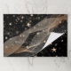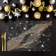 Este lugar de temática Navidad tiene un fondo negro profundo, adornado con una constelación de estrellas doradas de diferentes tamaños, diseminadas como un cielo nocturno. La pieza central es una cinta dorada que fluye, intrincadamente diseñada con líneas delgadas para crear una apariencia de malla, que grácilmente se curva a través de la plaza. Este lugar, con su diseño sofisticado y su espíritu festivo, le dará un toque de encanto y calidez a su entorno de vacaciones. Perfecto para aquellos que aprecian la belleza en detalle y desean hacer de la cena de sus Navidades una experiencia memorable. 🎄 ✨