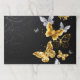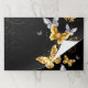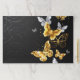 Oro, joyas y mariposas blancas sobre fondo negro. Mariposa dorada.