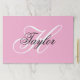 Personalizar el guión moderno de estilo manuscrito para crear tus propios carteles de papel para su fiesta de cumpleaños. Añada una inicial monograma y un nombre para crear una combinación inicial de primer nombre con caligrafía de estilo clásico elegante. En este diseño se pueden personalizar los colores rosa, negro y blanco.