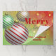Presentamos el papel de nuestros Navidades de personalizable, una deliciosa adición a su ambiente festivo. Este lugar, con su fondo verde claro y su efecto bokeh, aporta un toque de alegría a la cena. El lugar está adornado con tres vibrantes adornos en tonos rojos, verdes y dorados, cada uno de ellos con estriberas juguetonas. Estos adornos le dan un toque de color y un toque de espíritu festivo a la mesa. Pero lo que realmente diferencia este lugar es el toque personal. Las palabras "Feliz Navidad" están elegantemente escritas en un rico matiz rojo, llamando inmediatamente la atención y difundiendo la alegría de la temporada. Debajo de esto, encontrarás el nombre de tu familia, escrito con un moderno tipo de letra roja. Esta personalización transforma la colocación de un sencillo accesorio de mesa en un querido placer de vacaciones. Este lugar de Navidad en papel no es solamente un lugar, sino una celebración de la familia, la festividad y el calor de la temporada navideña. Es la forma perfecta de añadir un toque personal y festivo a las reuniones de Navidades.