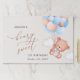 Añada un toque personal a su celebración de cumpleaños con estos artículos fiestas de diseño y memorables. El diseño presenta un oso de peluche con globos azules sobre fondo beige.