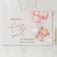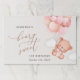 Añada un toque personal a su celebración de cumpleaños con estos artículos fiestas de diseño y memorables. El diseño presenta un oso de peluche con globos rosados de fondo beige.