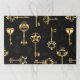 Patrón incomparable de llaves antiguas, doradas y de silueta sobre fondo negro.
