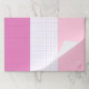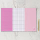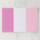 A practical way to write down notes, ideas, doodle, sketch, and whatever else you need. Just personalize this tearaway paper pad with your initials. The pad features three fields, one lined in hot pink, one white with purple grid lines, and one blank in a soft shade of pink with your monogram.
