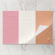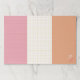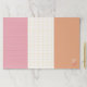 A practical way to write down notes, ideas, doodle, sketch, and whatever else you need. Just personalize this tearaway paper pad with your initials. The pad features three fields, one lined in soft pink, one white with yellow grid lines, and one blank in a soft shade of orange with your monogram.