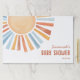 Bienvenidos a su pequeño rayo de sol con estos carteles de Baby Shower Neutral de Boho Sunshine Gender con un adorable sol de color amarillo, oro, naranja, azul y melocotón.