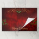 Un pergamino dorado de bonito con un centro de bayas rojas y verdes adorna la parte superior de estos útiles carteles de lágrimas. El texto de tu personalizado está en oro en la parte inferior, y las bromas extra de holly hacen las esteras un poco más festivas. Las imágenes y el texto se colocan sobre un fondo de gradiente rojo burdeos brillante y rico que casi resplandece. Se vería como un espectacular conjunto de mesas verdes o blancas.