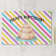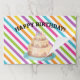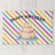 Felices placeres desechables de cumpleaños. El bizcocho de cumpleaños y las rayas de bonito hacen de este lugar un momento feliz. Utilicen estos asientos desechables en la escuela, el trabajo, la oficina y el hogar. Las palabras se pueden cambiar pero no los gráficos.