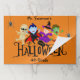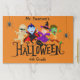 Esta gran almohadilla de papel hace las veces de placemat. Tema de Halloween con truco o dulces y unos cuantos amigos de araña en un agradable fondo de naranja de calabaza. El nombre y la clase se pueden cambiar para decir lo que quieras. ¿No lo usamos para un aula? ¡Cámbialo para decir "tu apellido y fiesta de Halloween" o Feliz cumpleaños o lo que quieras! Se puede cambiar toda la redacción excepto "Halloween feliz".